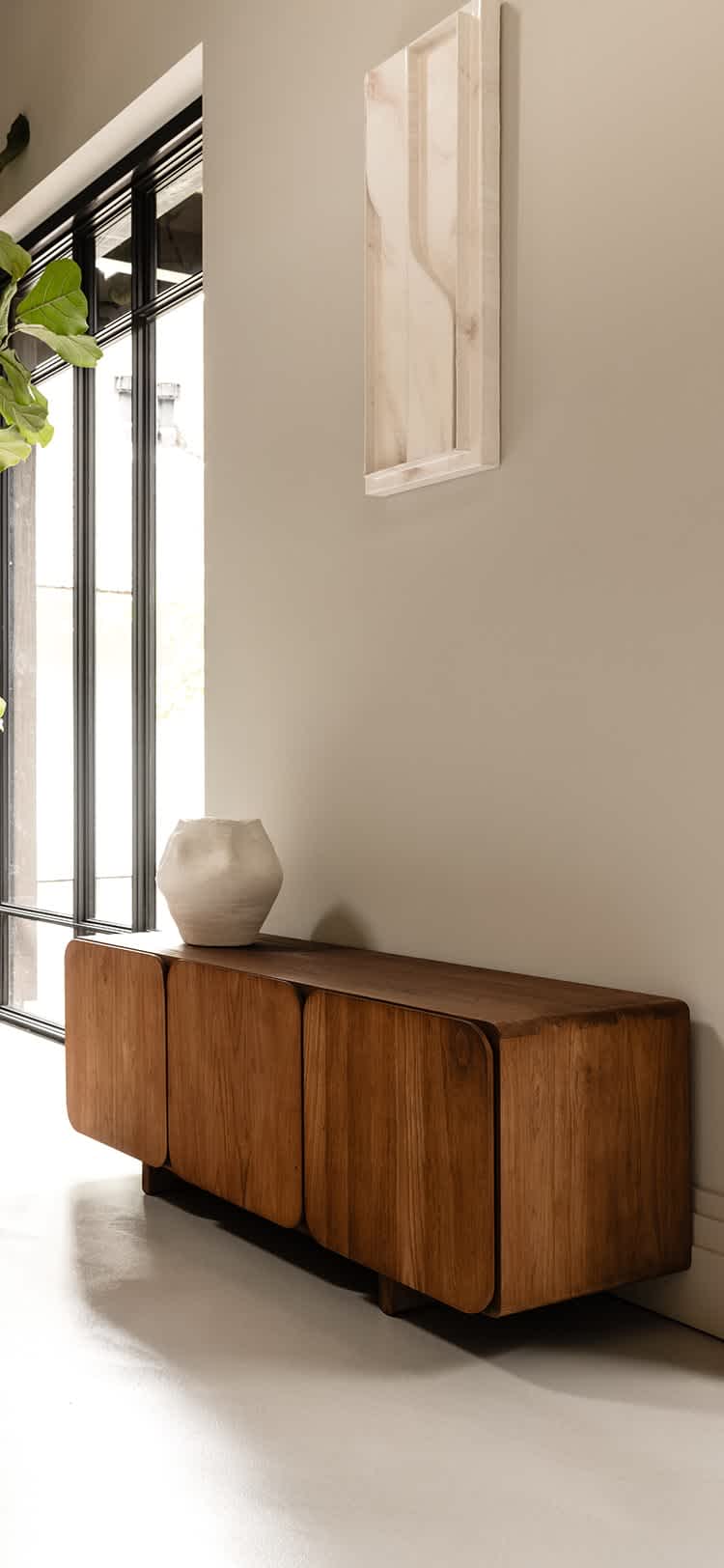 Die Tess Kollektion betont mit einem ausdrucksstarken, modernen Design die Schönheit und Ursprünglichkeit der Natur. Jedes dieser Schmuckstücke ist aus recyceltem Teakholz gefertigt und zelebriert die Kurven, Maserungen und Unvollkommenheit dieses natürlichen Rohstoffs. Starke Konturen treffen auf sanfte Details: Die charakteristischen quadratischen Formen und großzügigen Dimensionen gepaart mit traditioneller Handwerkskunst machen jedes dieser Schmuckstücke zu einem wahren Statement-Piece. Von ausdrucksstarken Sideboards bis hin zu vielseitigen Aufbewahrungsmöglichkeiten bietet dir Tess die perfekte Kombination aus zeitloser Eleganz und moderner Klarheit für dein Zuhause.