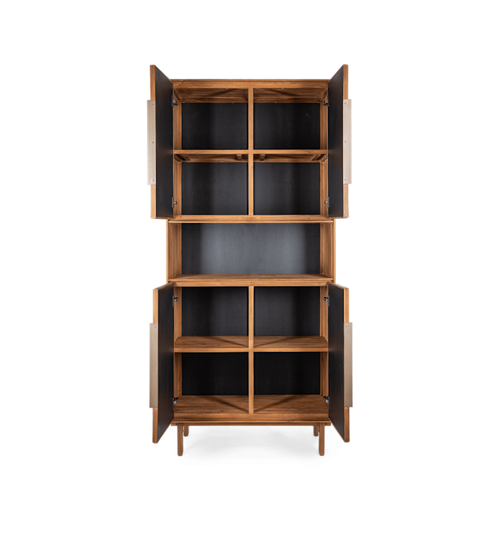 Tall and beautifully styled, with its retro style and manner, the Grace Cabinet is both practical and versatile. Crafted from reclaimed teak, its four doors are faced with beautifully tactile, woven mid rib coconut fronds, framed with beaded teak with elegant streamline handles.