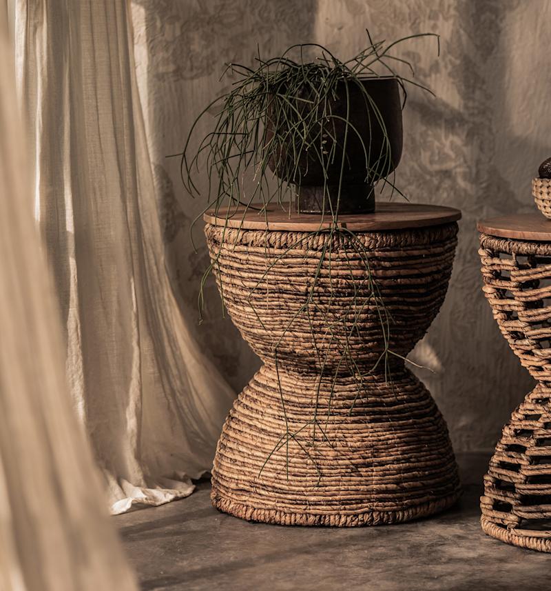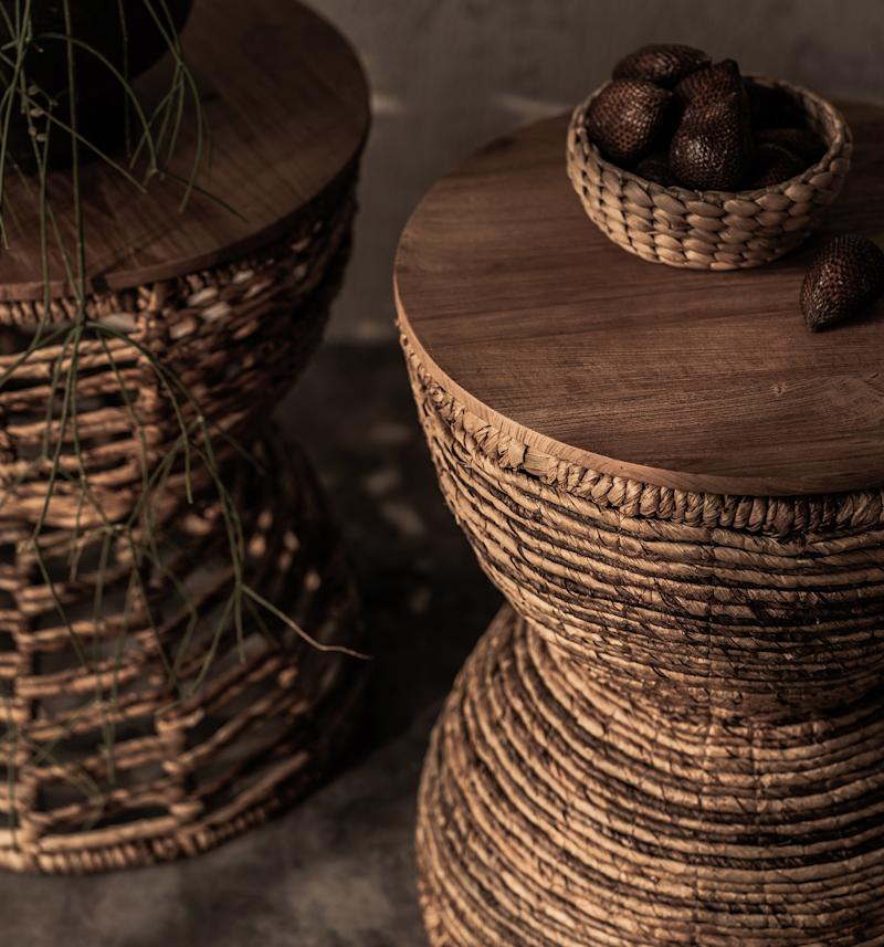 The drum shaped Rebana Bass Stool is versatile enough to be used as a stool, coffee table, or for decoration, whatever you please. It has a tabletop made from high-quality reclaimed teak wood, and a strong iron wire framed, completely wrapped with organic abaca rope, handmade according to ancient Javanese technique.