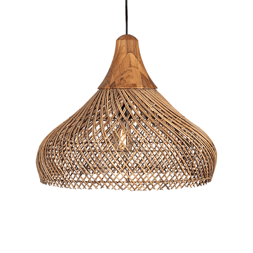 De klassieke hanglamp krijgt een natuurlijke update met de Tuba Lamp. De lamp heeft een teakhouten bovenkant en een rotan hanger in organische vorm, handgeweven volgens traditionele Javaanse techniek. De lamp is prachtig op zichzelf, maar ook mooi te combineren met verschillende maten en type lampen. De lamp is ook in het zwart verkrijgbaar.