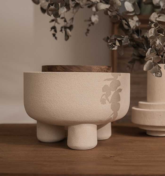 De Elin schaal is een diepe kom, uit één stuk bestaande, lokale Java-zandsteen. De Elin wordt met de hand gemaakt door onze dBodhi beeldhouwers en wordt verrijkt door een prachtig handgemaakte, teruggewonnen teakhouten deksel, waardoor het X/O concept van de letter O zichtbaar wordt.
