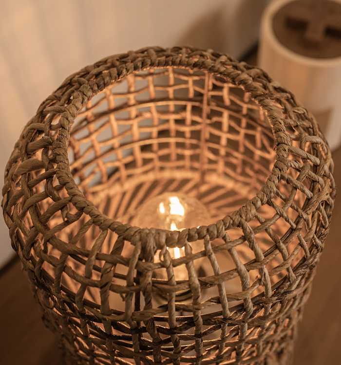 De Twister tafellampen vrijstaande lampen gevormd in een 'visval'-design met behulp van een metalen frame met handgeweven Abaca om een rustieke en natuurlijke uitstraling te creƫren. De lampen worden vervolgens gedraaid voor een stijlvol 'Twist' detail en staat op een solide, met de handgemaakte zandstenen voet, die zowel stabiliteit als sfeer biedt.